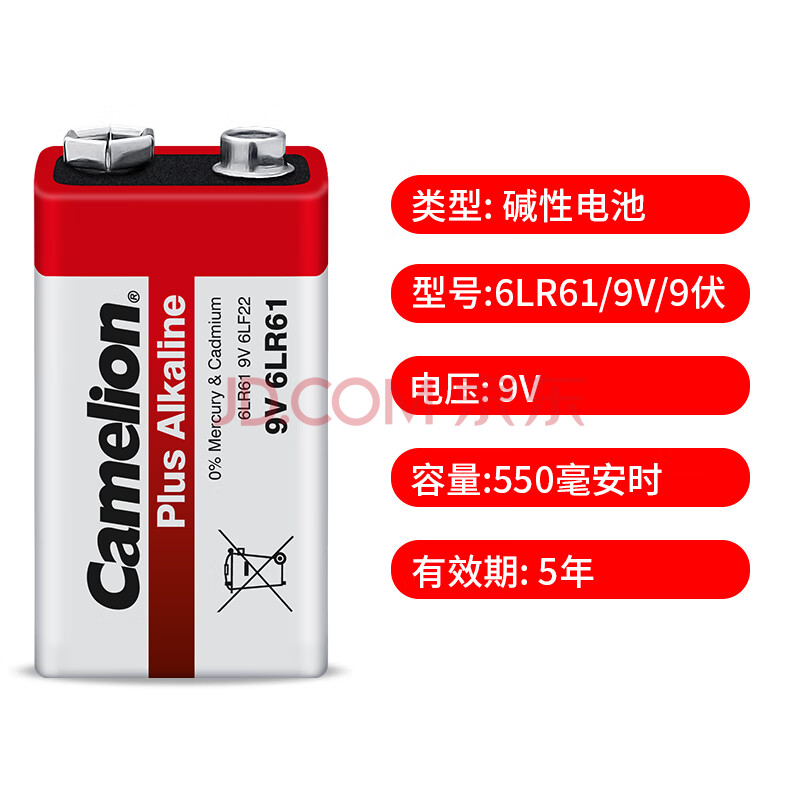 商品相册:飞狮(Camelion)碱性电池 干电池 6LR61/9V/9伏 电池 1节 万用表/烟雾报警器/话筒/麦克风/医疗仪器第