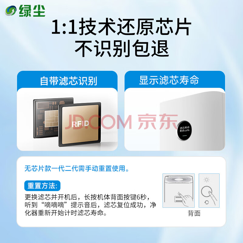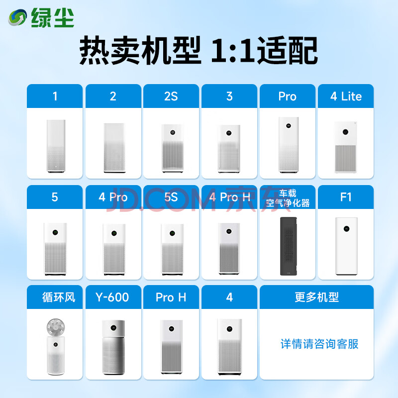 商品相册:绿尘 适配小米米家(MI)空气净化器滤芯1代2代3代/2S/pro净化器滤网除甲醛除颗粒物除PM2.5除异味 M1第