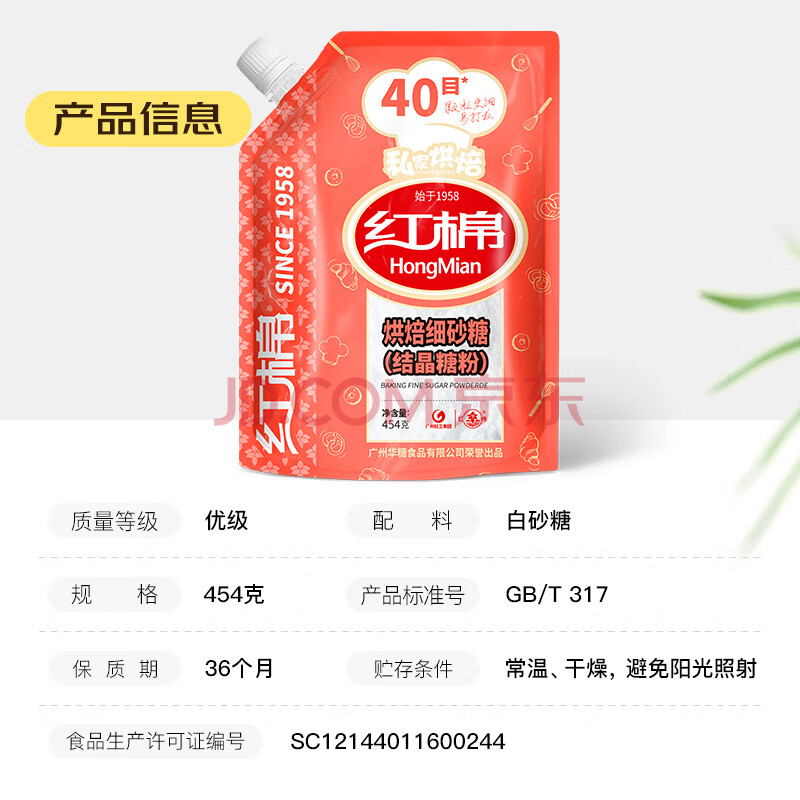 商品相册:红棉碳法优级白砂糖厨房调味面包点心烘焙细砂糖结晶糖粉 454g第