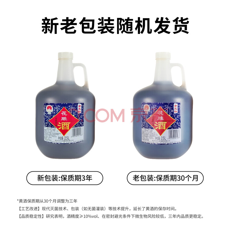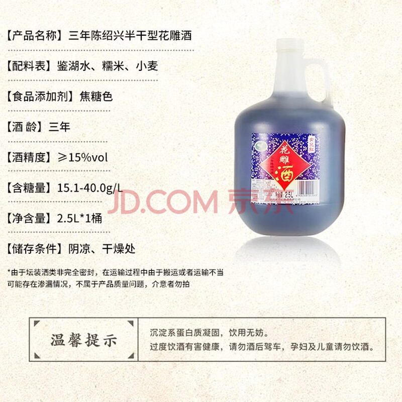 商品相册:女兒红 花雕酒三年 半干型 绍兴黄酒 2.5L 单桶装第