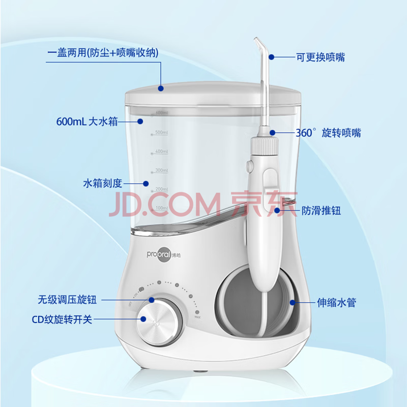商品相册:博皓(prooral)台式冲牙器5102C家用洗牙器水牙线正畸专用大容量洁牙器无级调速 象牙白 600ml 【生日礼物】第