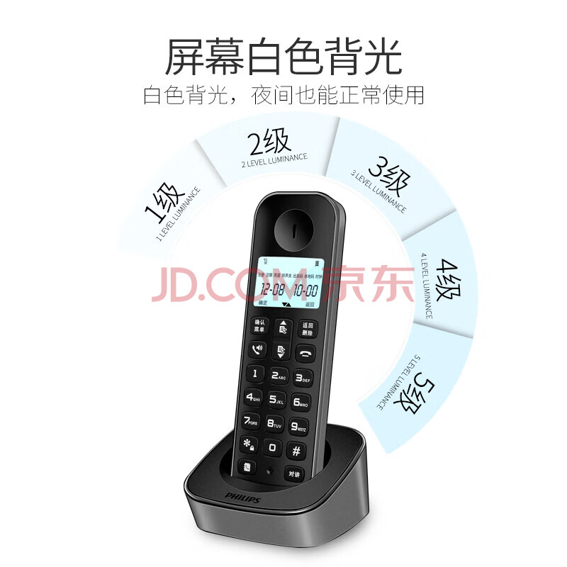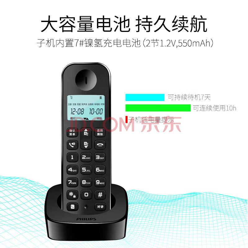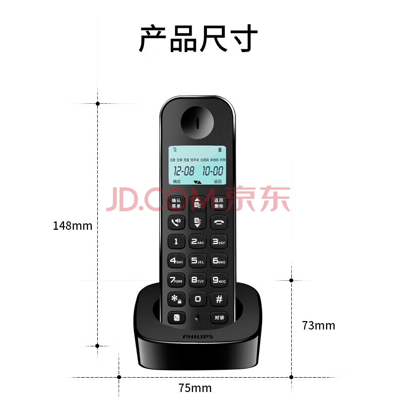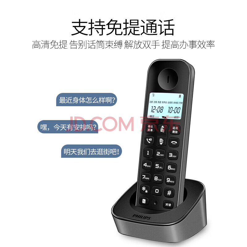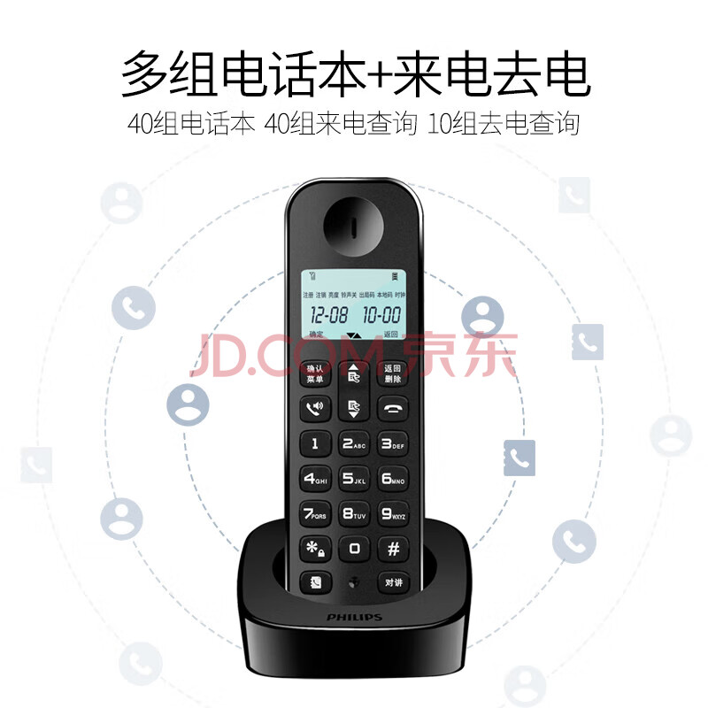 商品相册:飞利浦(PHILIPS)无绳电话机 无线座机子母机家用办公中文大音量持久待机 DCTG160单机 黑色第