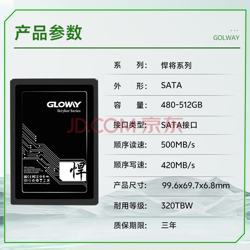 商品相册:光威(Gloway)512GB SSD固态硬盘 SATA3.0 500MB/s 笔记本/台式机通用 悍将系列第