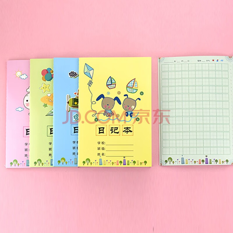 商品相册:誉禾A5小学生日记本田字格笔记本儿童日常记录摘记本彩色作业本记事本周记本4本装 5132第