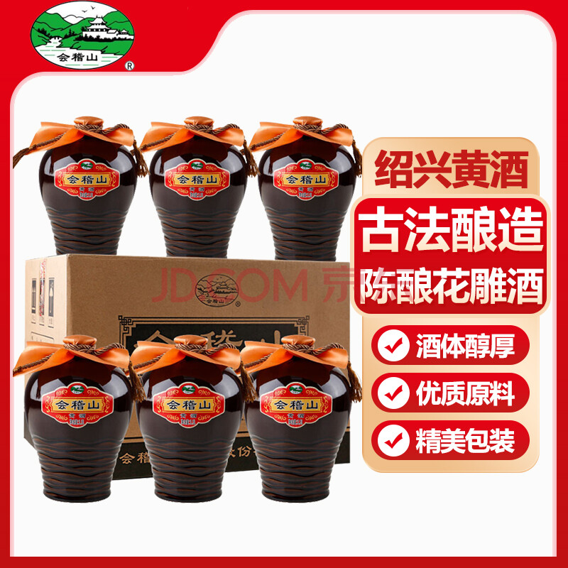 商品相册:会稽山 绍兴黄酒 糯米花雕酒 半干型 加饭酒1.5L*6坛装整箱装第