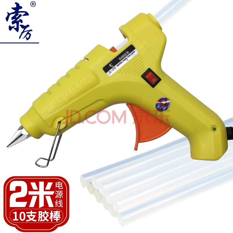 商品相册:索厉 热熔胶枪大号10-80W胶棒用11MM 适用电脑组装/工艺维修/手工制作,带开关/标配10根胶棒/SL-RQ80(黄色)第