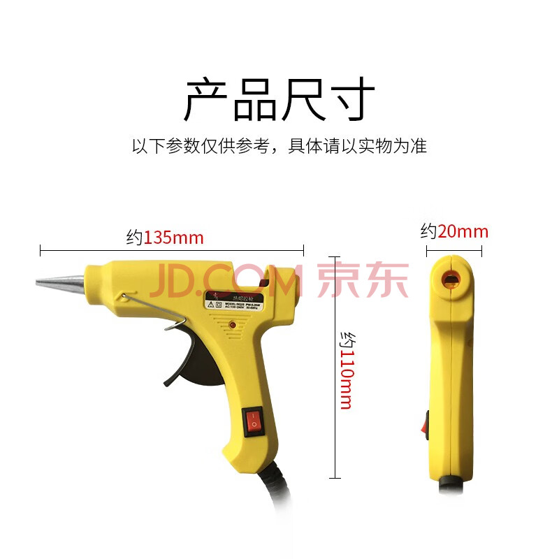 商品相册:索厉 热熔胶枪5-20W胶棒7MM 适用电脑组装/工艺维修/带开关/标配20根白色胶棒/SL-RQ20黄色(收纳包款)第