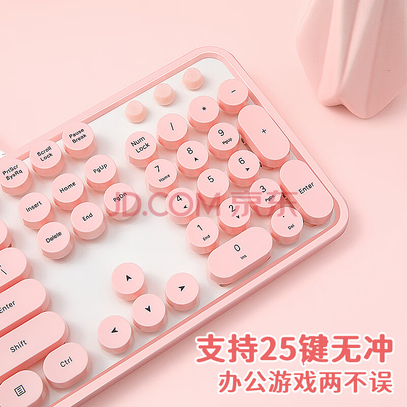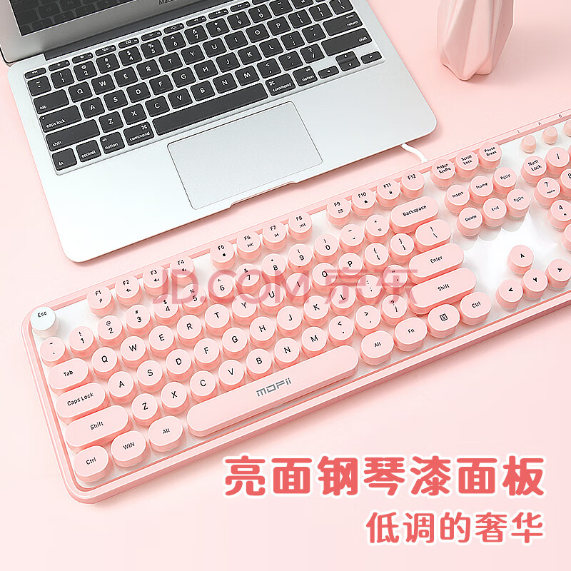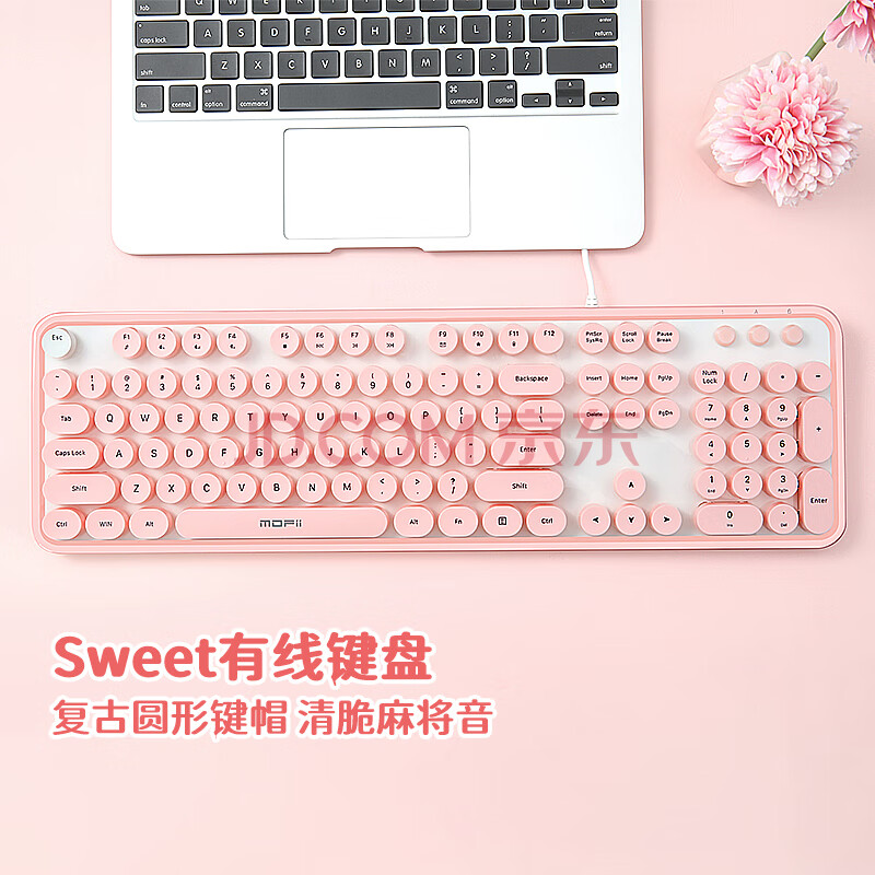 商品相册:摩天手(Mofii)Sweet有线 键盘女生巧克力麻将音复古圆点台式机笔记本办公键盘 樱花粉第