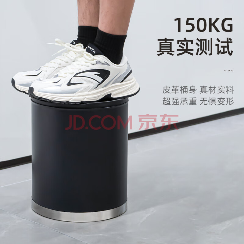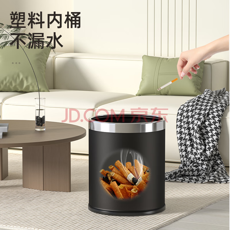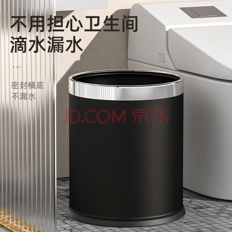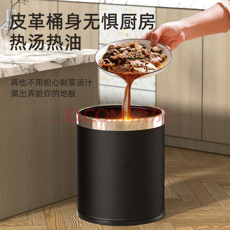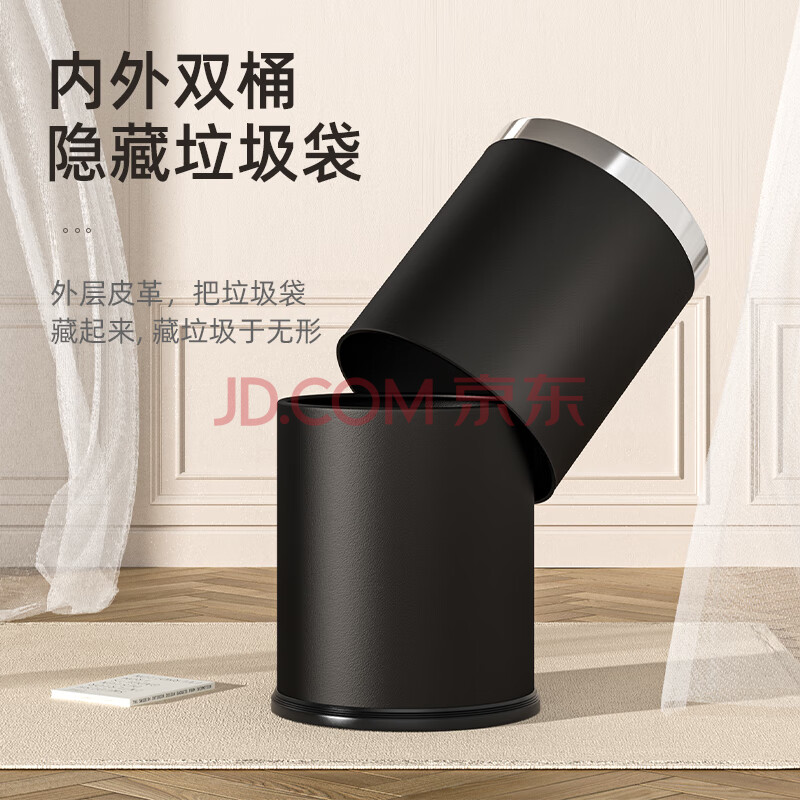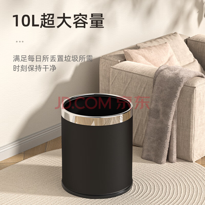 商品相册:本迪压圈垃圾桶10L大号黑色酒店带内桶双层皮革塑料压圈垃圾桶第