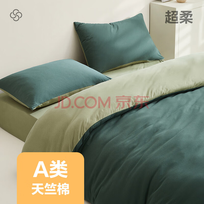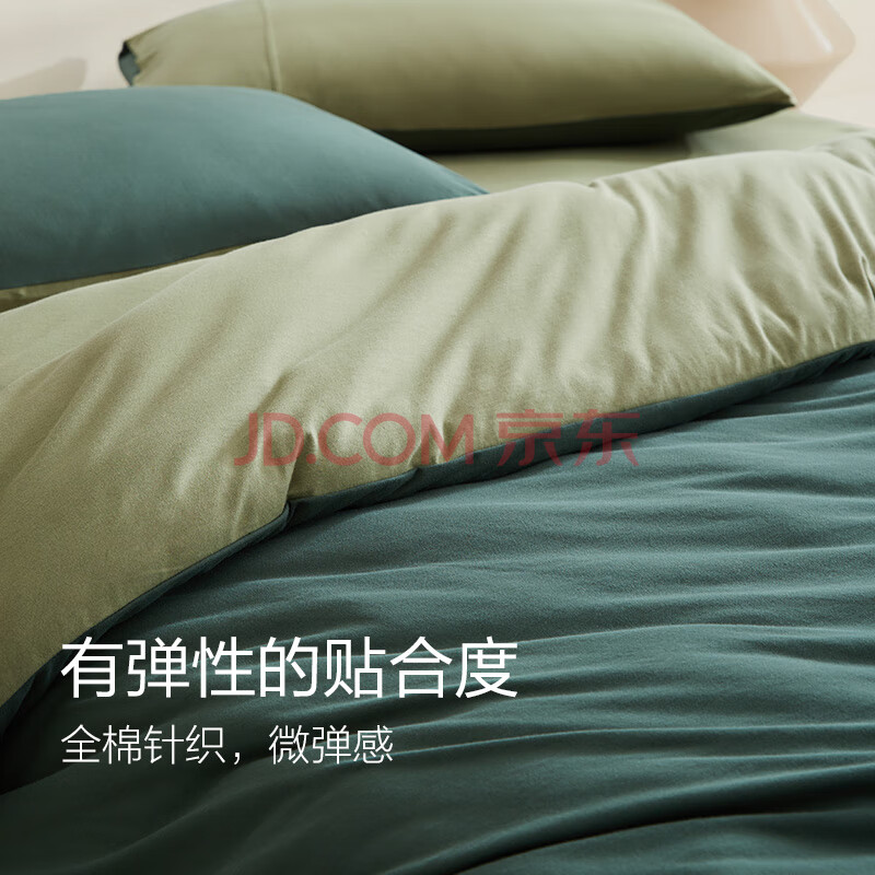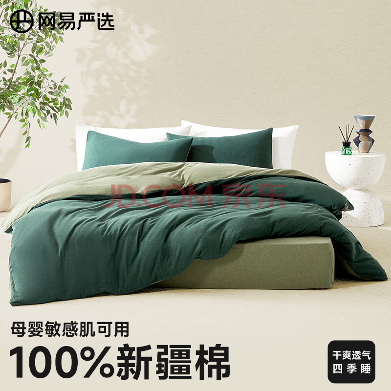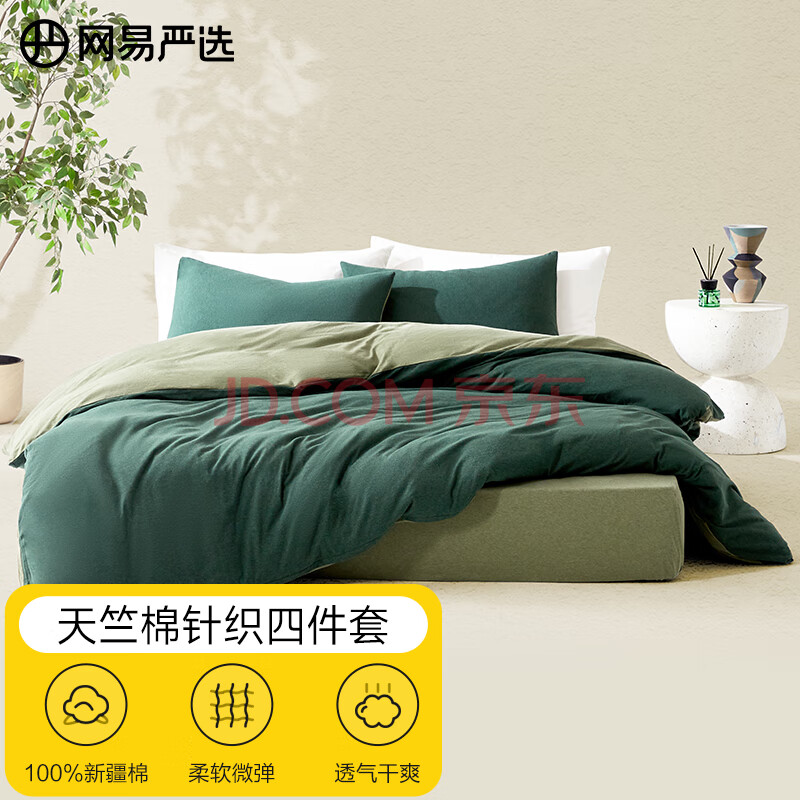商品相册:网易严选 A类新疆天竺棉100%全棉针织加厚保暖三件套墨绿色床单款1.2m床第