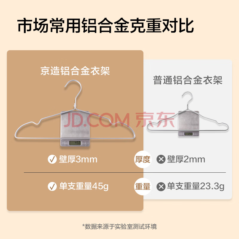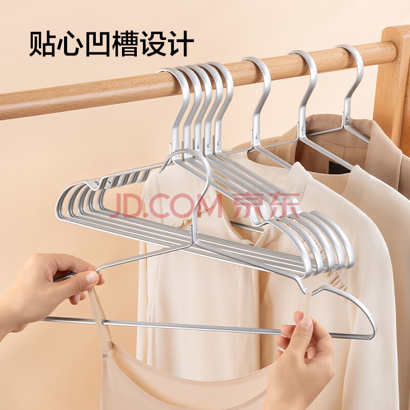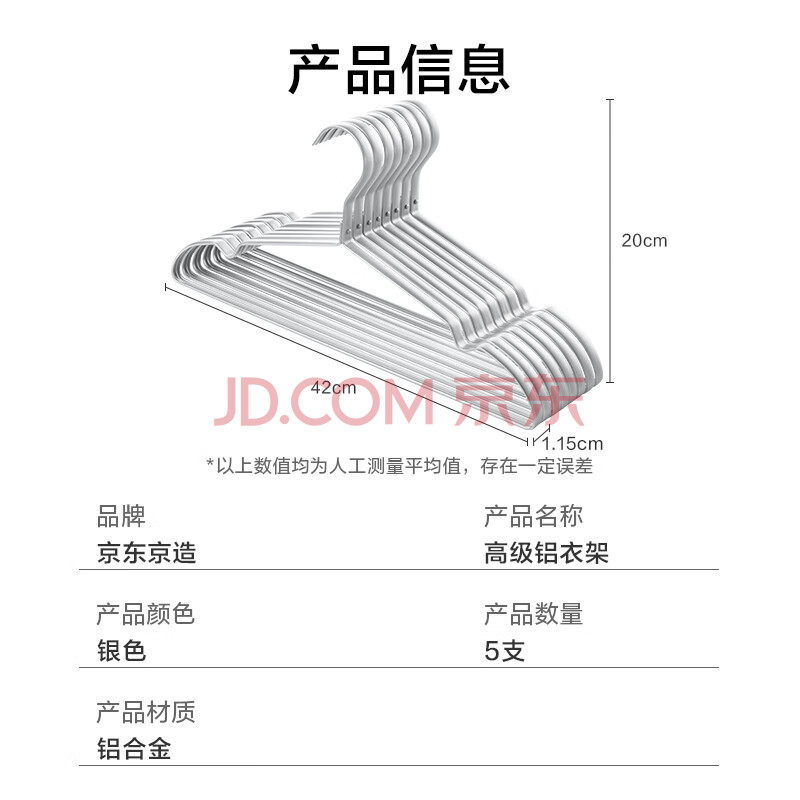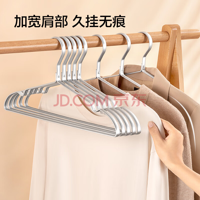 商品相册:京东京造 衣架铝合金5个银色无痕衣服架宽肩衣架子太空铝晾衣架加宽衣服挂第