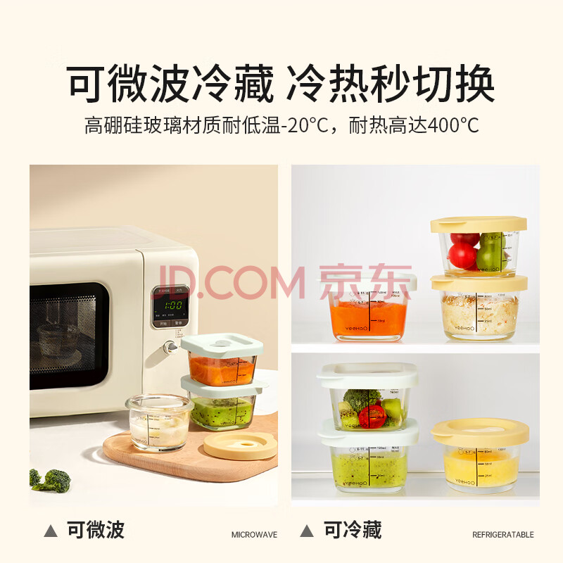 商品相册:英氏(YEEHOO)辅食盒新生婴儿玻璃保鲜盒冷冻盒密封储存盒宝宝辅食碗可蒸煮第