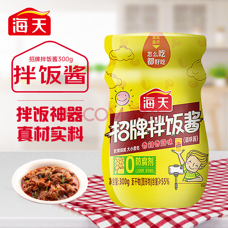 商品相册:海天 招牌拌饭酱300g*6(玻璃瓶) 香辣香菇味辣椒酱料第