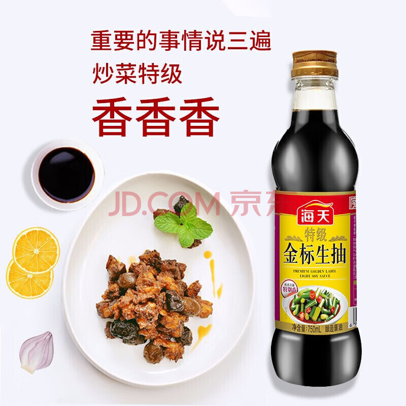 商品相册:海天 特级金标生抽750mL*4(PET瓶)鲜味十足 调味品 生抽酱油第