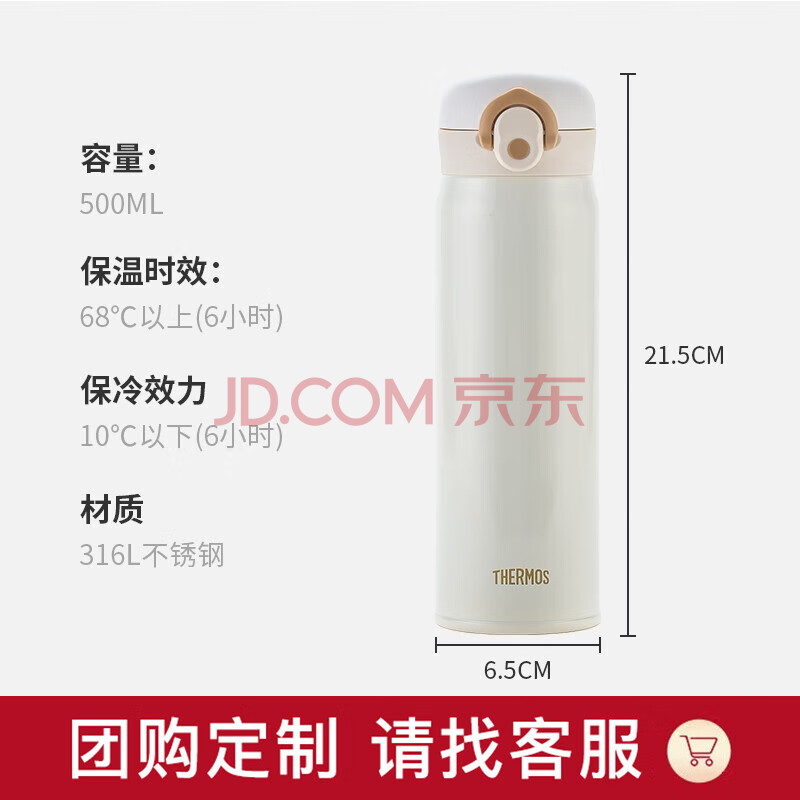 商品相册:膳魔师(THERMOS)保温杯500毫升男女大容量316钢学生儿童保冷水杯子 TCMO-500S WH第