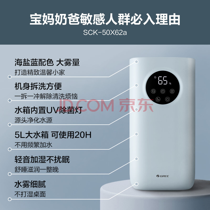 商品相册:格力(GREE)加湿器家用卧室婴儿孕妇静音除菌拆洗空气加湿器桌面床头落地办公室客厅大雾量香薰实用礼物50x62a第1张/共8