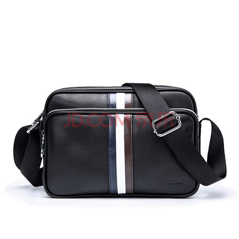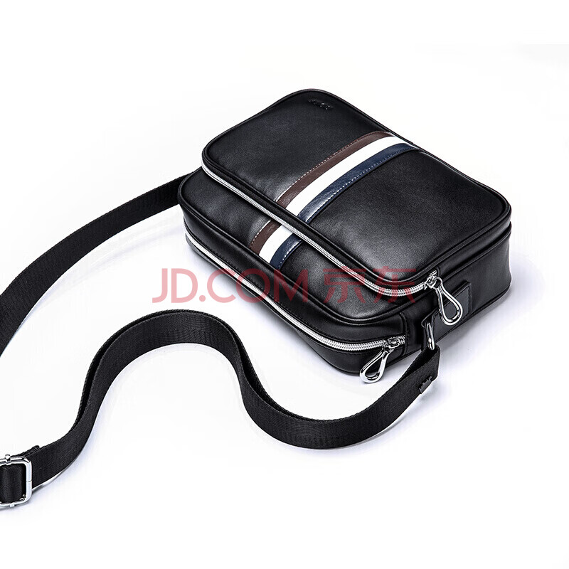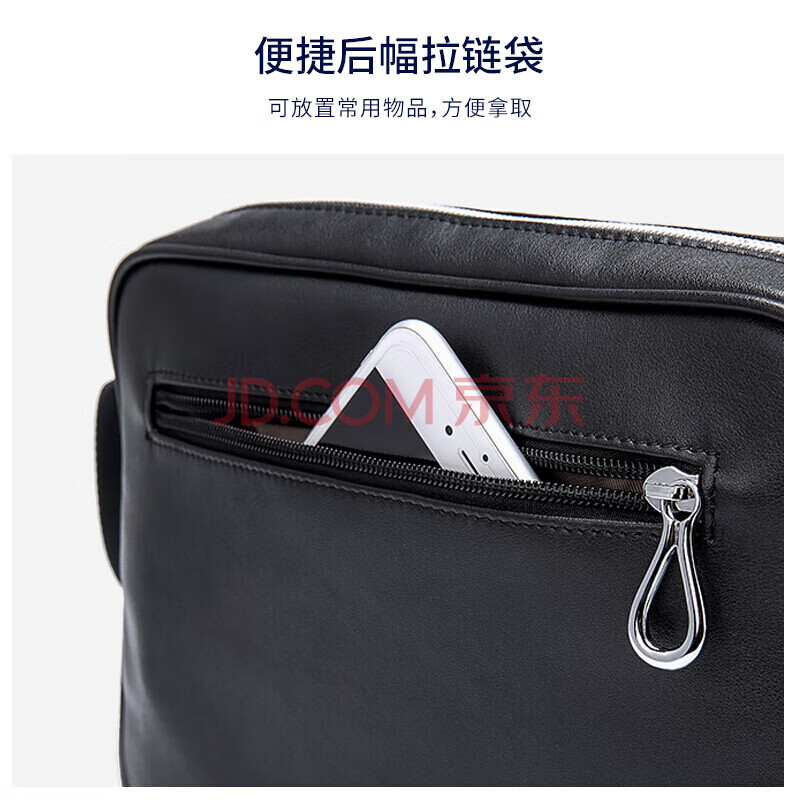 商品相册:高尔夫(GOLF)单肩包男士头层牛皮配超纤斜挎包男商务通勤撞色邮差男包 黑色第