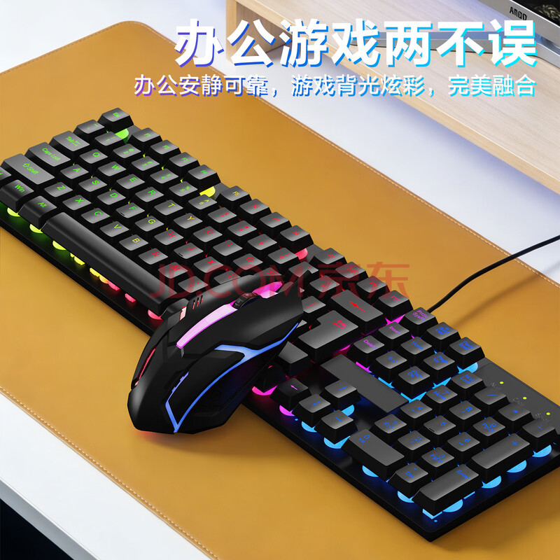 商品相册:灵蛇(LINGSHE)有线字符发光键盘鼠标 机械手感游戏电竞笔记本台式电脑外设 薄膜键鼠套装 T09第