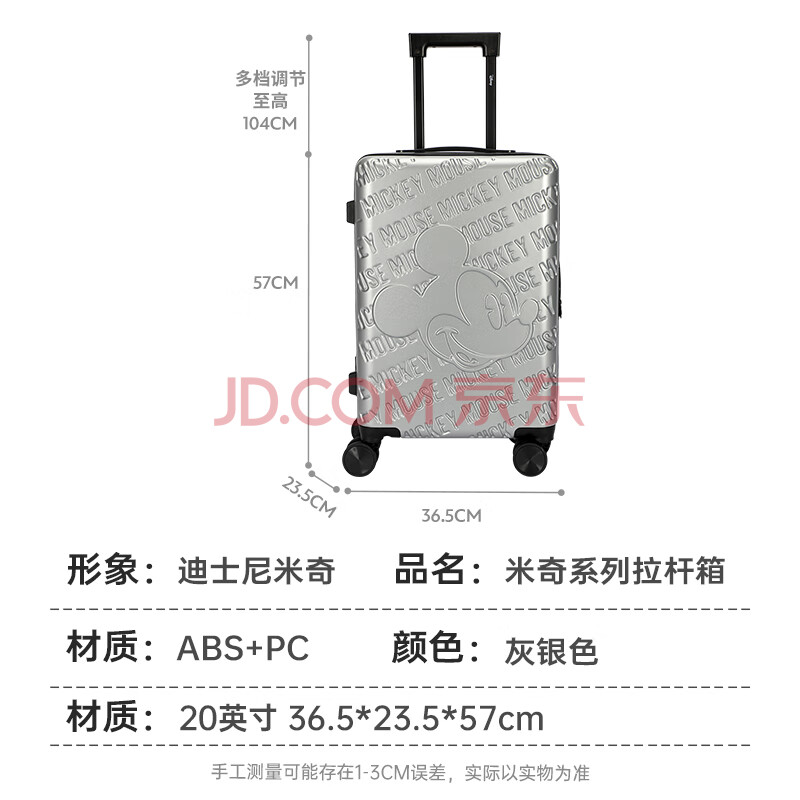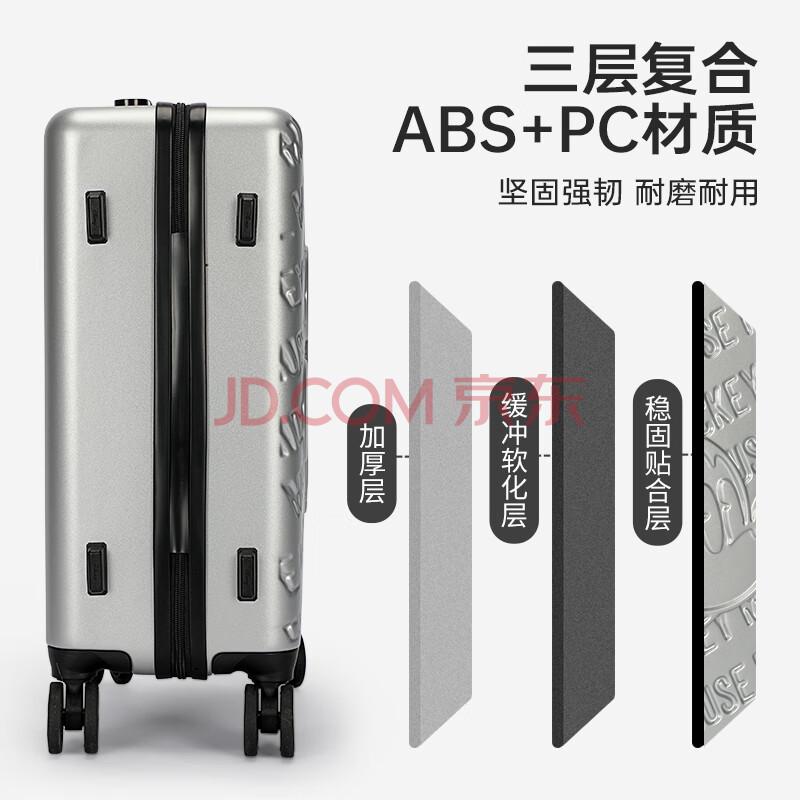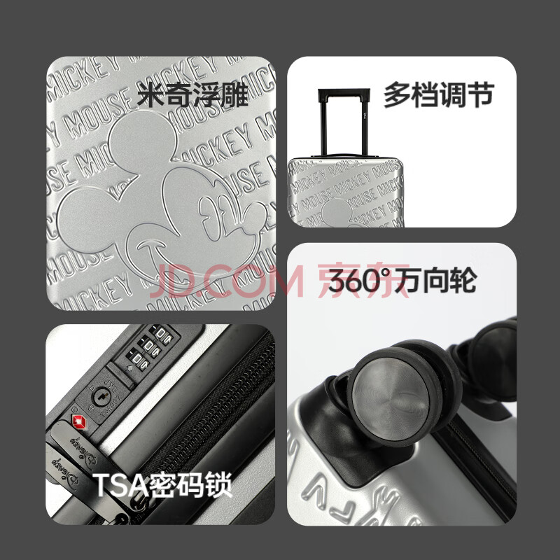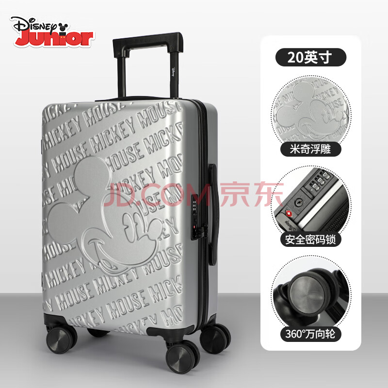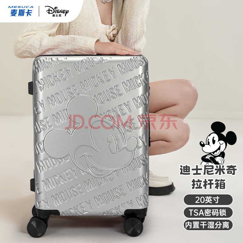 商品相册:麦斯卡迪士尼联名学生行李箱女密码皮箱大容量登机箱白色20英寸旅行箱第