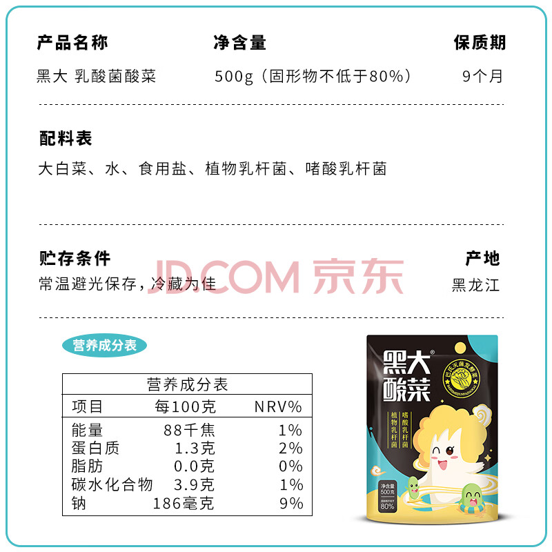 商品相册:黑大 东北酸菜 乳酸菌发酵酸菜丝500g 酸白菜 0化学添加剂第