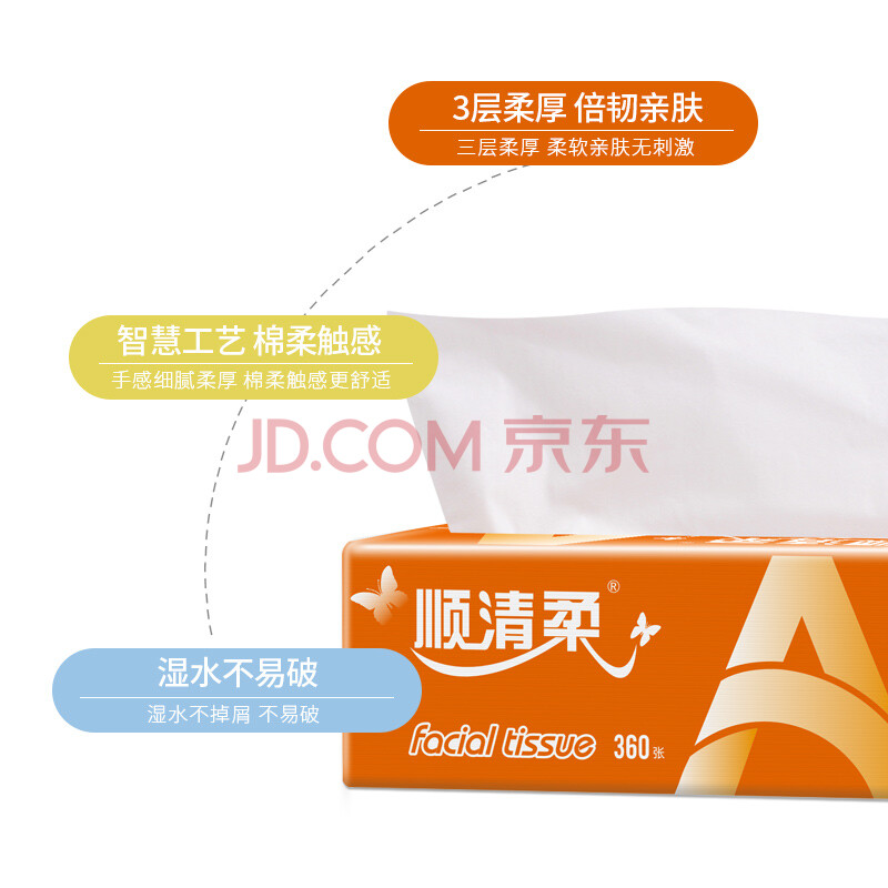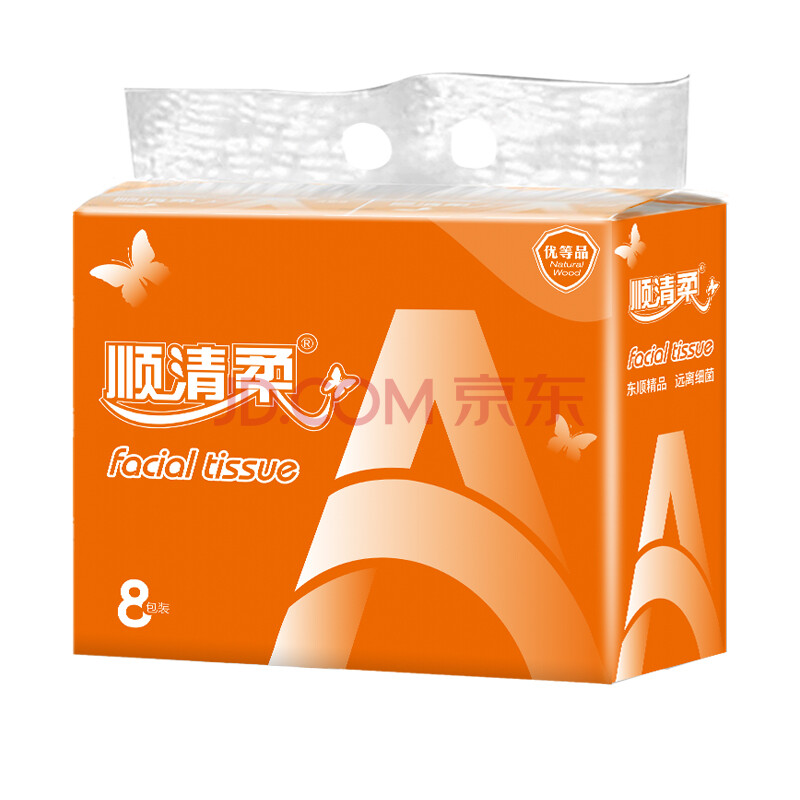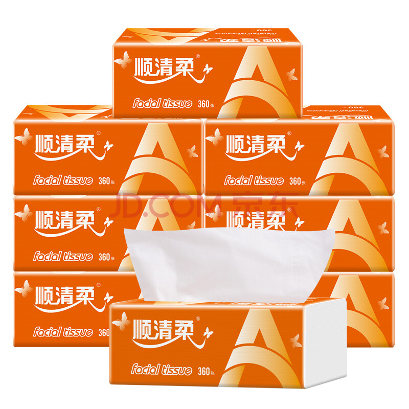 商品相册:顺清柔抽纸国际版3层120抽*8包M码 软抽面巾纸纸巾(提装销售) 第