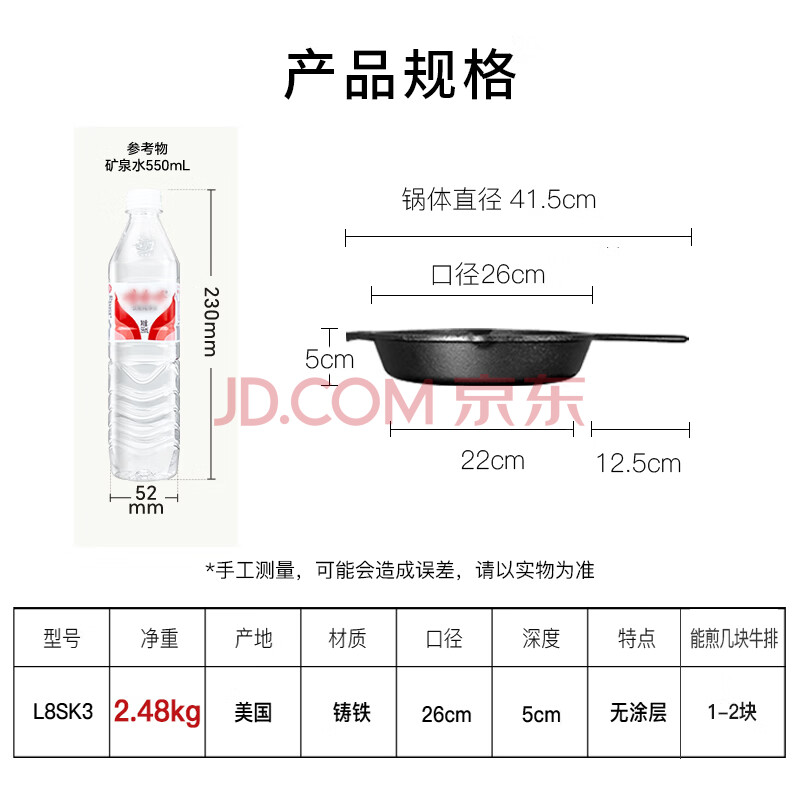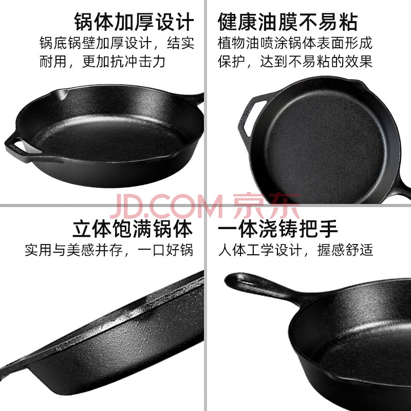 商品相册:LODGE【美国进口】26CM 不易粘铸铁锅无涂层牛排煎锅通用款L8SK3第