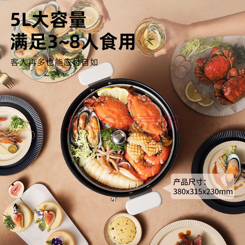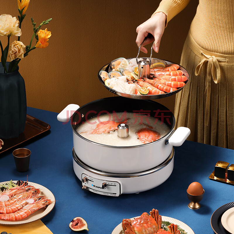 商品相册:蓝宝(BLAUPUNKT)升降电火锅家用多功能料理锅5L分体式电热锅可拆洗磁炉电炖锅烧烤肉煎炒炖锅轻奢蓝H1第