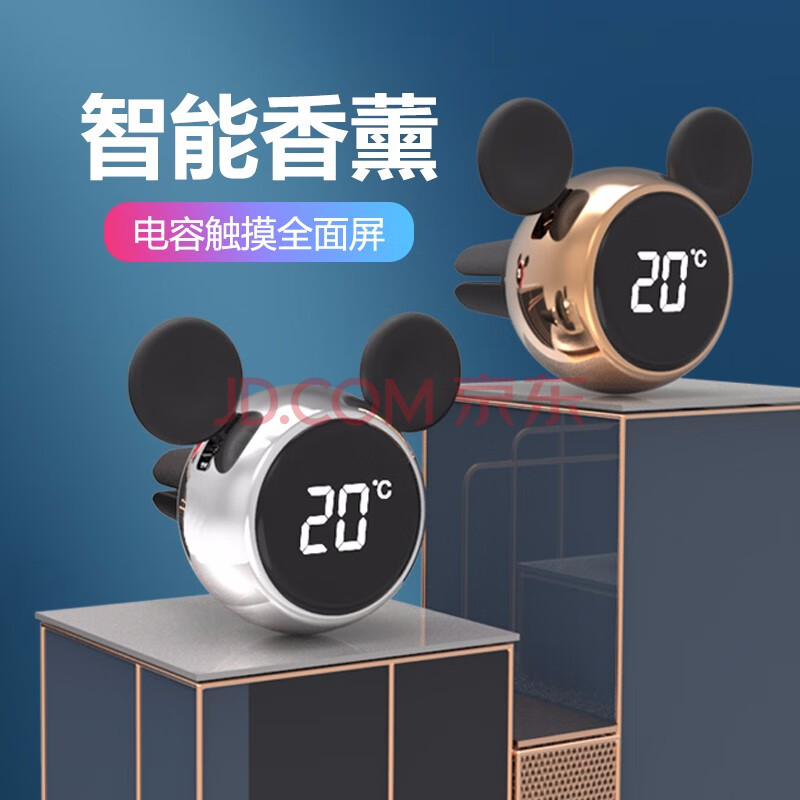 商品相册:迪加伦 车载香薰 智能触屏温度显示 车用香水 男士女性 创意高档空调出风口卡通装饰汽车用品 电镀银第