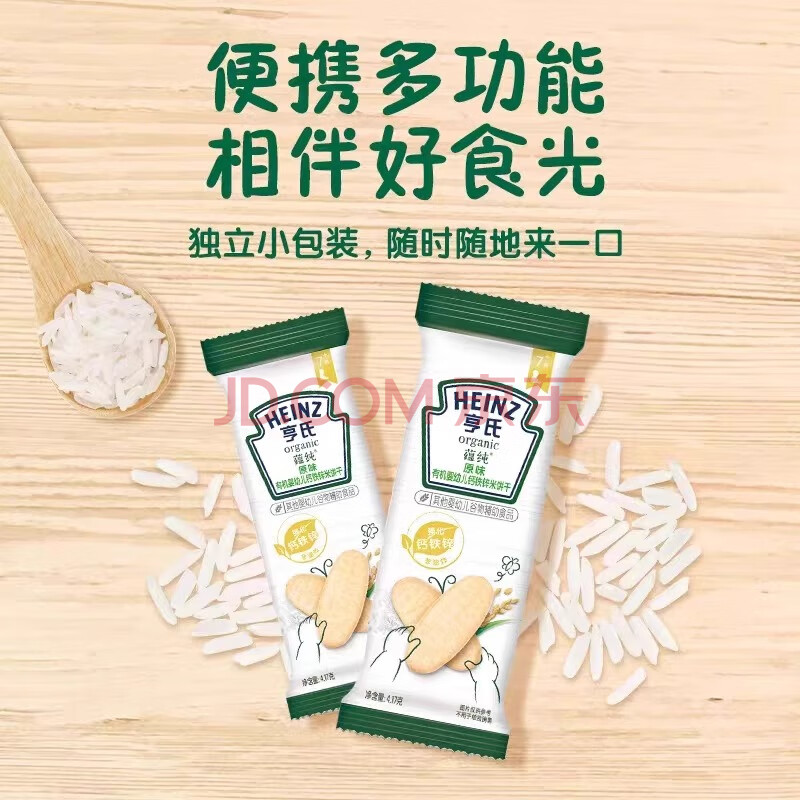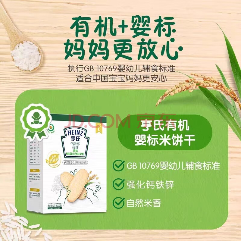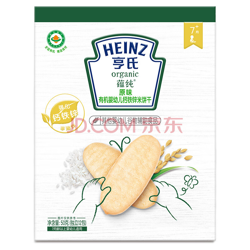 商品相册:亨氏(Heinz)有机婴幼儿钙铁锌原味米饼宝宝零食辅食6个月以上独立小包装50g第