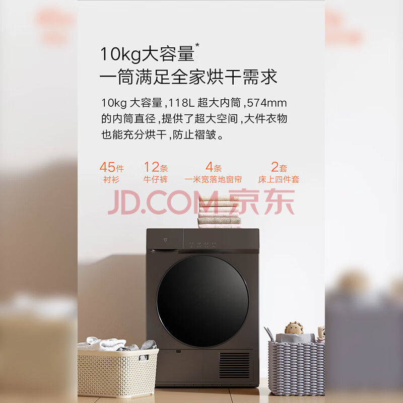 商品相册:米家小米热泵烘干机 10KG家用干衣机 超薄全嵌混动速热防缠绕超薄 H100MJ102S第