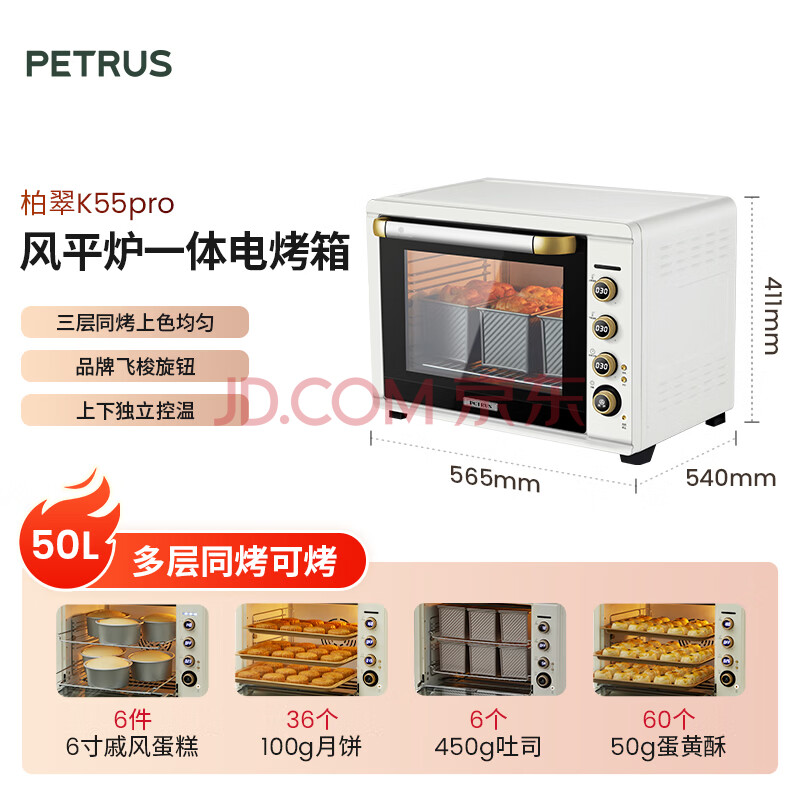 商品相册:柏翠(petrus)电烤箱风炉烤箱家用小型烘焙商用多功能发酵箱k55pro 第
