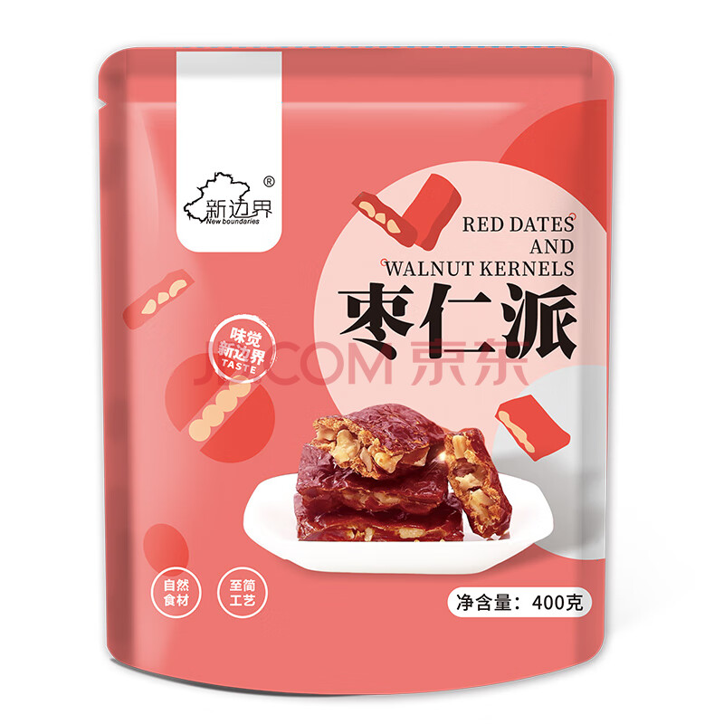 商品相册:新边界 枣仁派400g/袋红枣夹核桃仁真空独立包装枣糕新疆特产第
