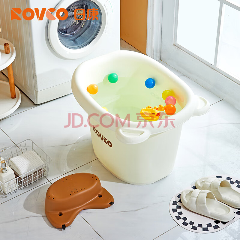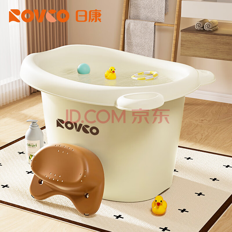 商品相册:日康(rikang)泡澡桶 婴儿洗澡盆 儿童洗澡桶 浴缸浴桶赠浴凳 米色 X1001-3第