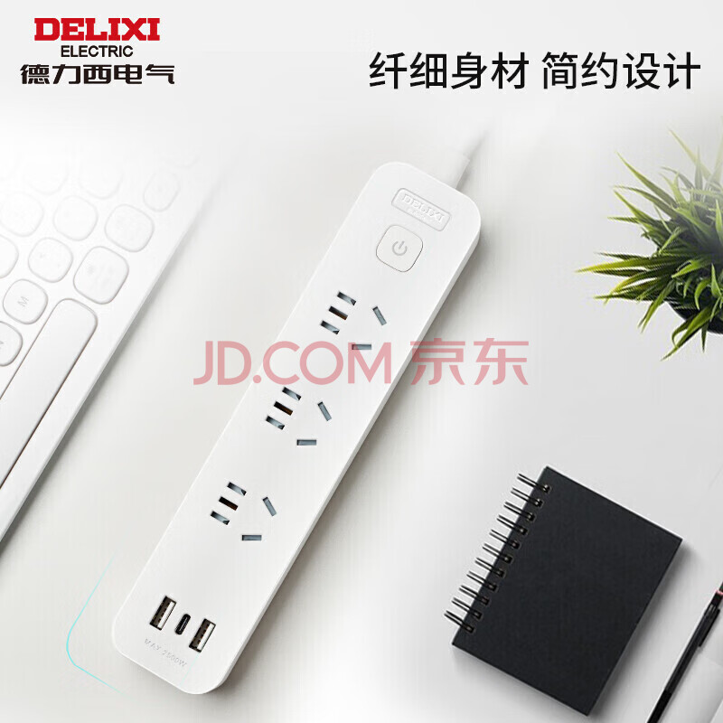 商品相册:德力西(DELIXI) USB插座 插线板/插排/排插/拖线板/插板Type-c口+USB口+2插孔全长1.8米 总控开关第