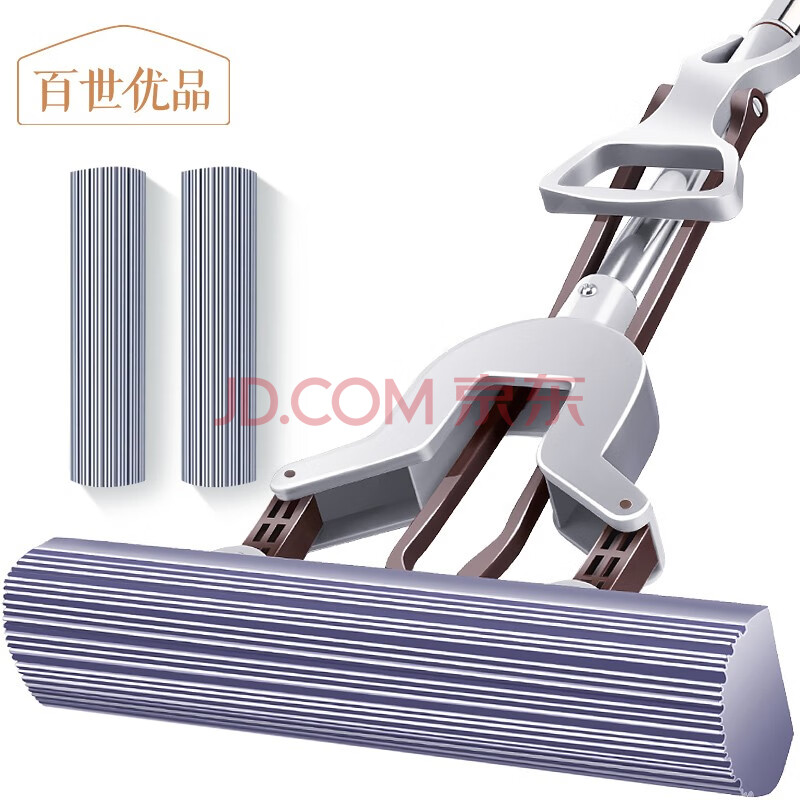 商品相册:百世优品 胶棉拖把28cm2头对折挤水拖把家用一拖净免手洗2025拖地吸水海棉第