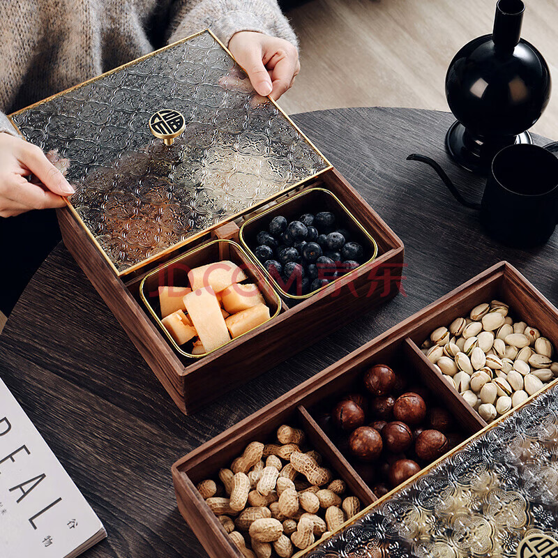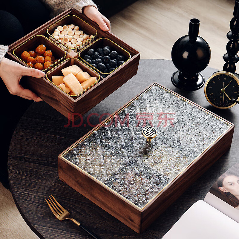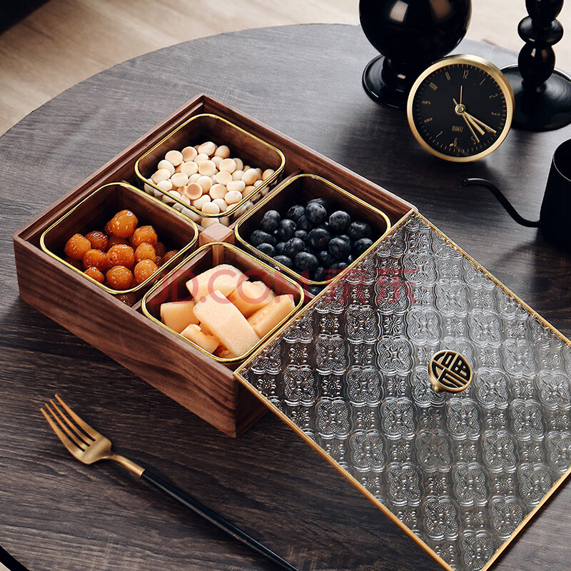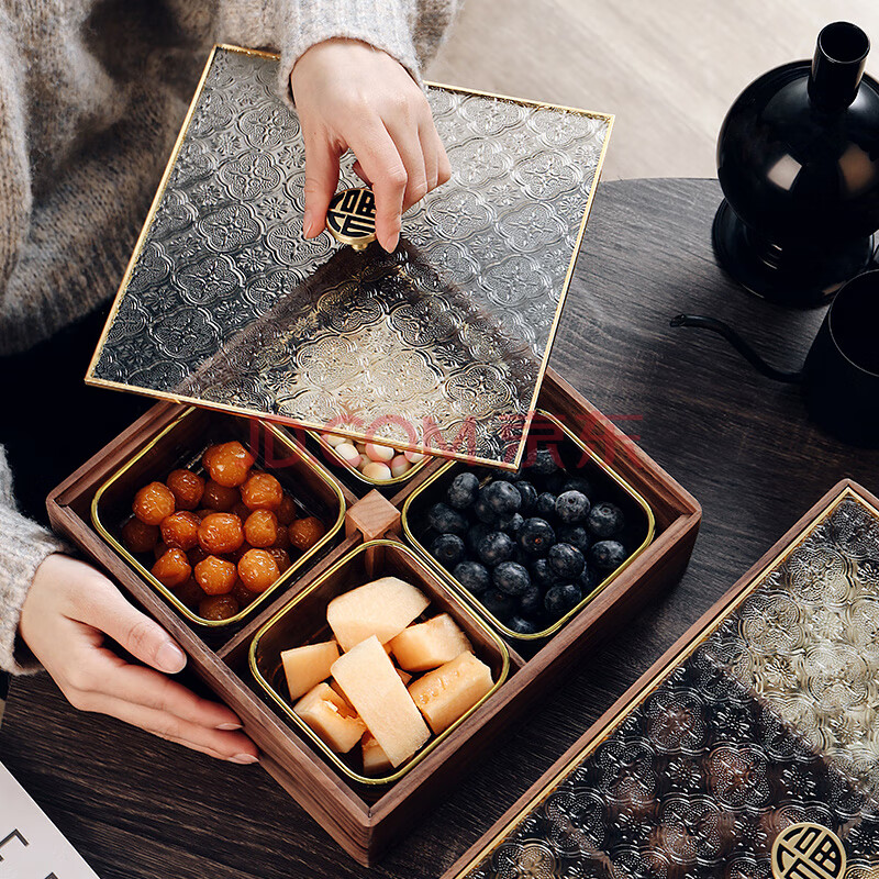 商品相册:格娜斯 干果盘新中式高端客厅茶几家用坚果零食轻奢摆放胡桃木糖果收纳盒6分格第