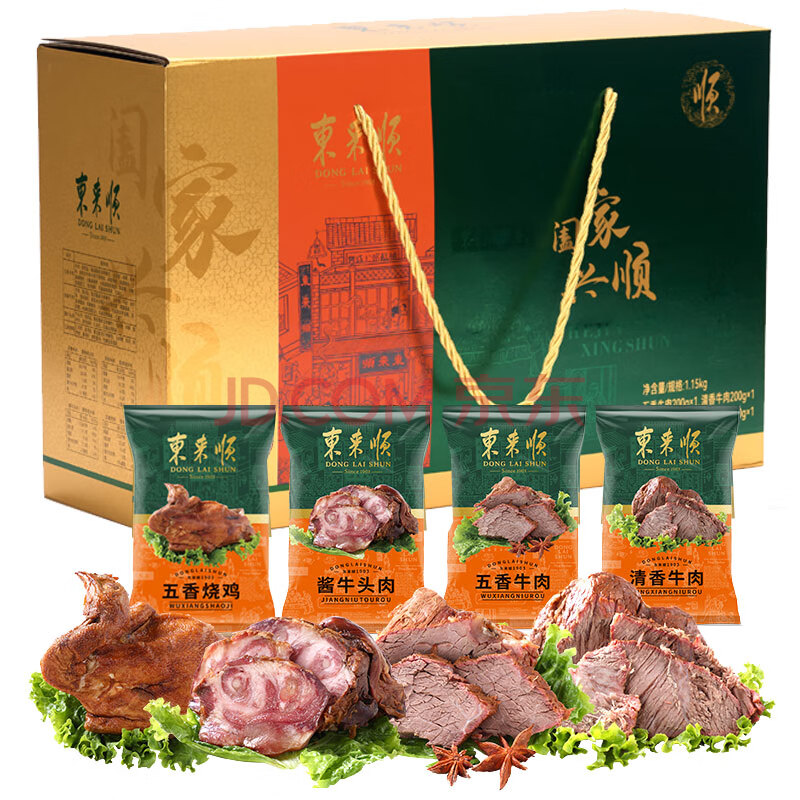 商品相册:东来顺牛肉清真熟食礼盒开袋即食烧鸡中华老字号清明节阖家兴顺1150g第
