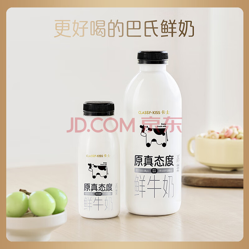 商品相册:卡士(CLASSY.KISS)原真态度鲜牛奶755mL 3.8g原生乳蛋白 巴氏杀菌鲜奶第