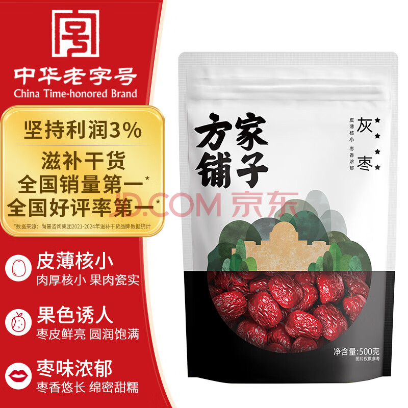 商品相册:方家铺子中华老字号 新疆灰枣500g 1斤红枣果干新疆特产 泡茶煲汤煮粥零食第