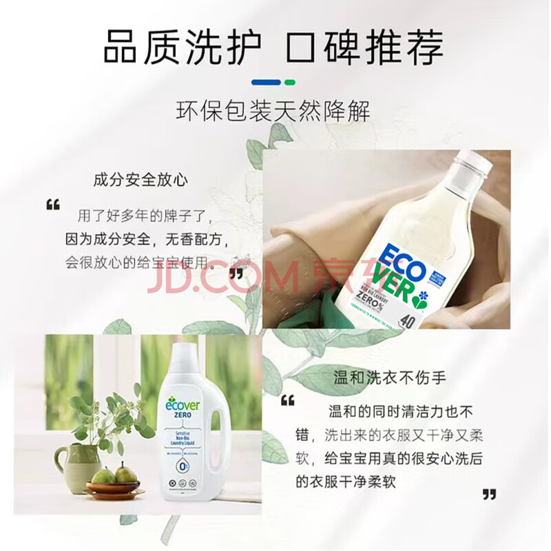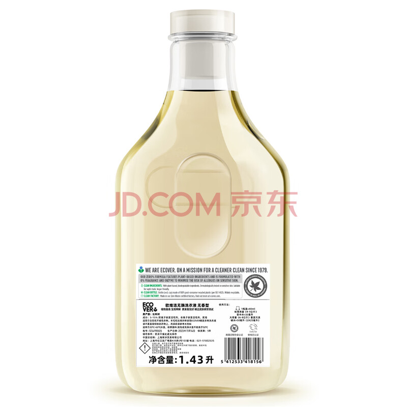 商品相册:ECOVER浓缩无香洗衣液 无香型 1.43L 原装进口 孕妇婴幼儿适用 温和配方第