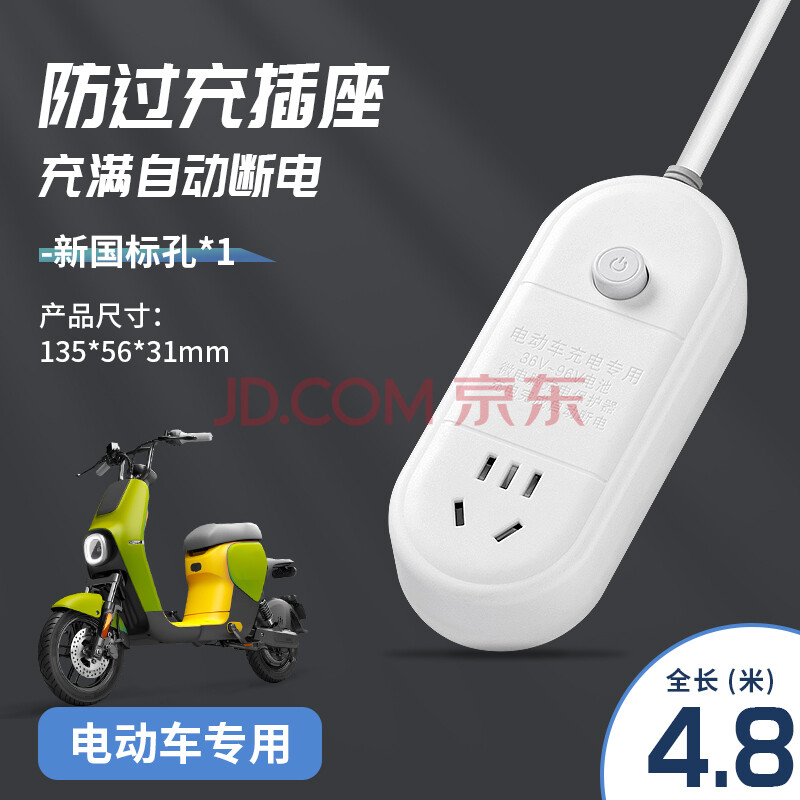 商品相册:阿乐乐可【4.8米国标】电动车充电保护器插排/插线板/排插/接线板 充满自断 防火阻燃单充第