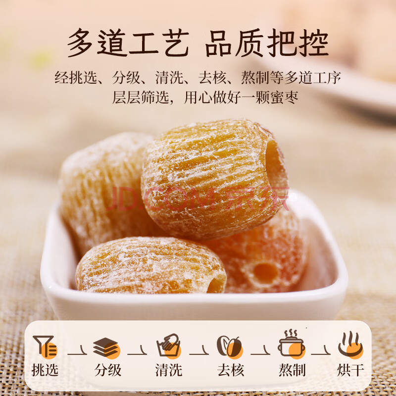 商品相册:鲜窝窝无核蜜枣500g 煲汤煮粥包粽子食材蜜枣即食金丝枣去核休闲零食第