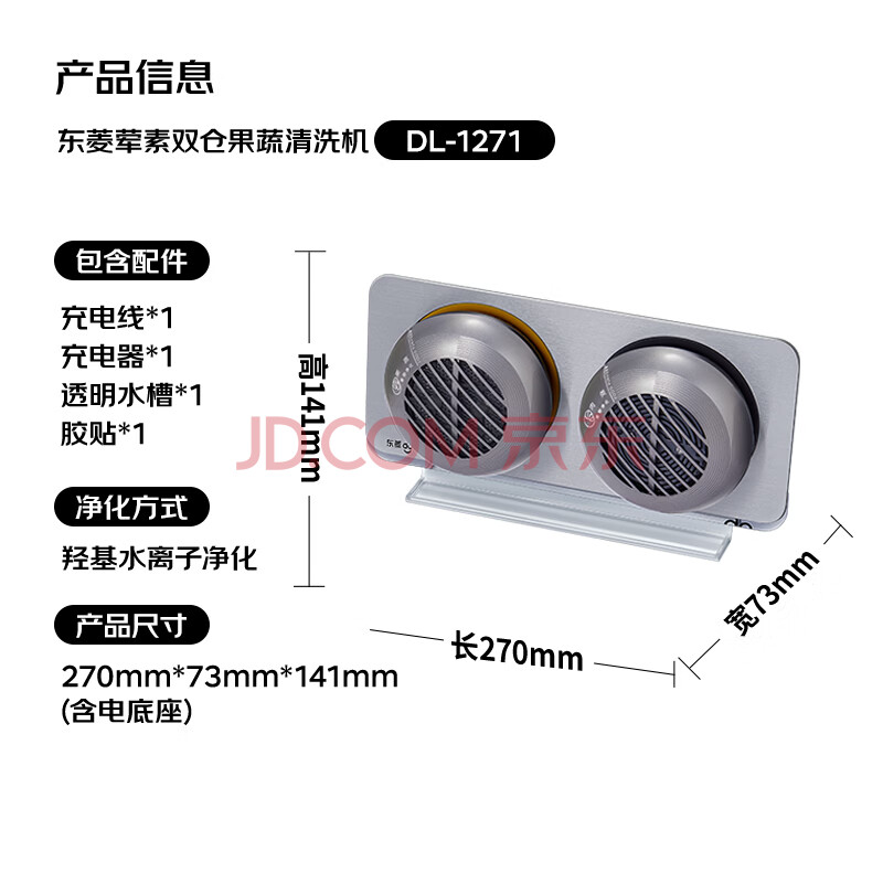 商品相册:东菱(Donlim)果蔬清洗机 家用果蔬食材净化器 除菌去农残 无线双仓 荤素分类净化升级款DL-1271第