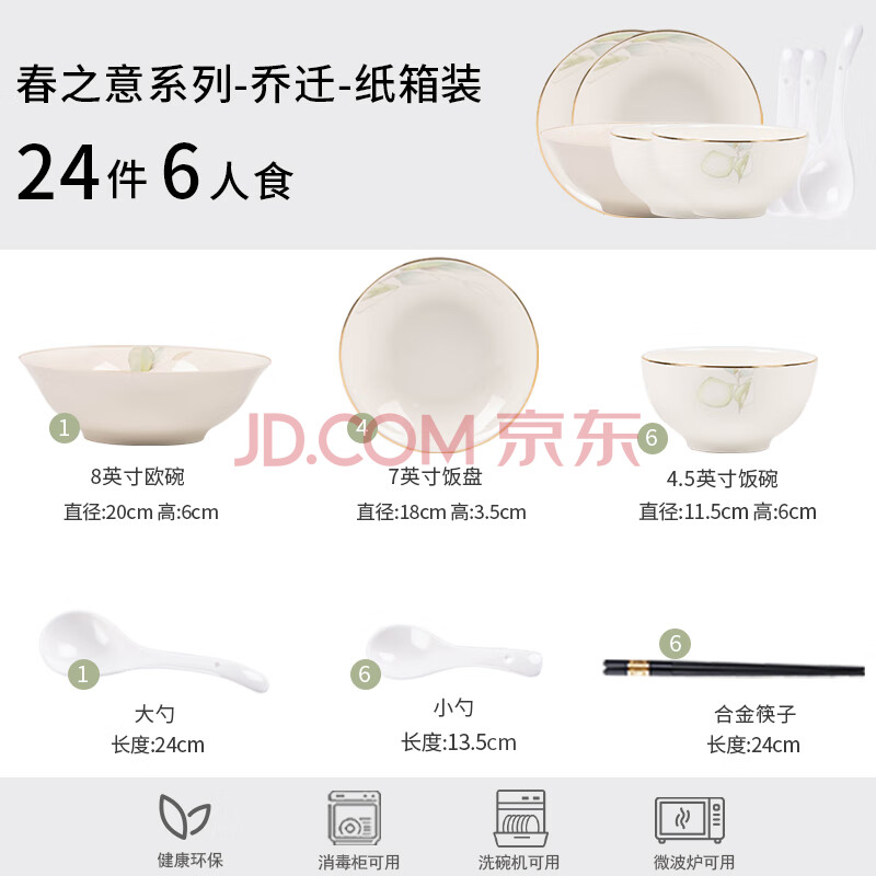 商品相册:浩雅景德镇碗具套装陶瓷餐具套装碗盘碟家用套装餐具套装 24头春之意第
