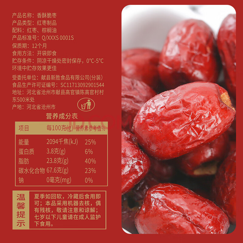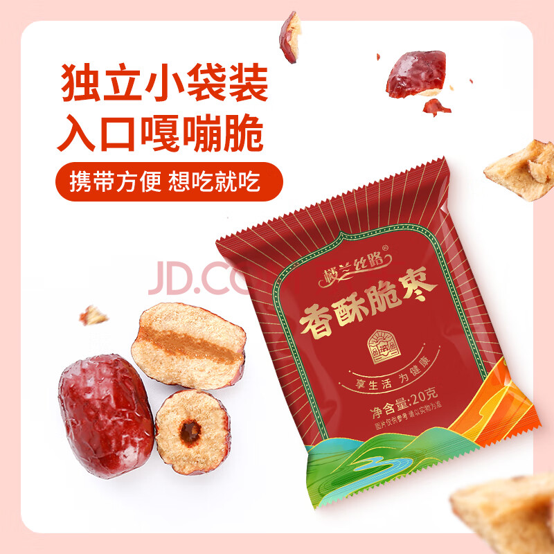 商品相册:楼兰丝路 香酥脆枣20g*20袋蜜饯果干去核枣子 休闲零食红枣 无核灰枣第