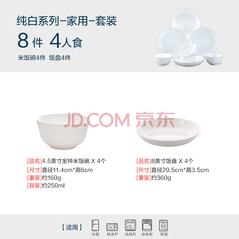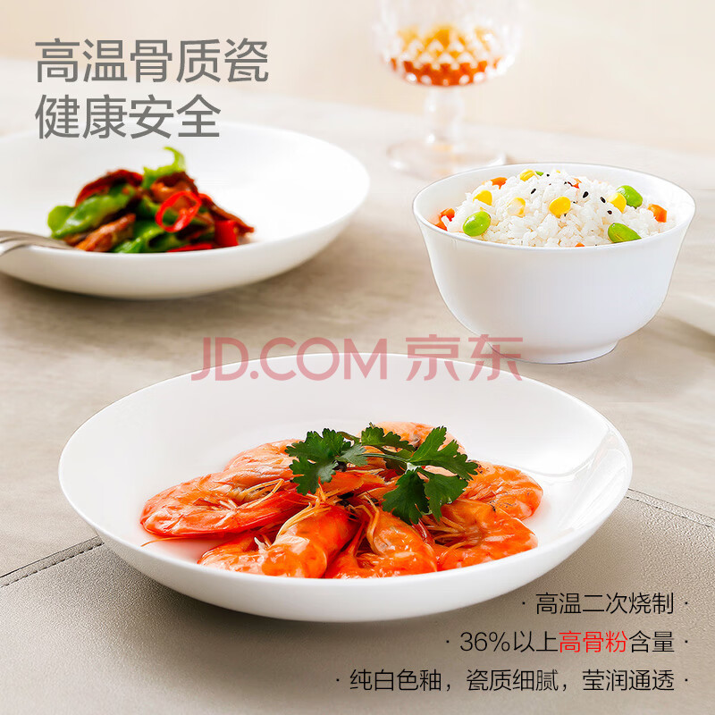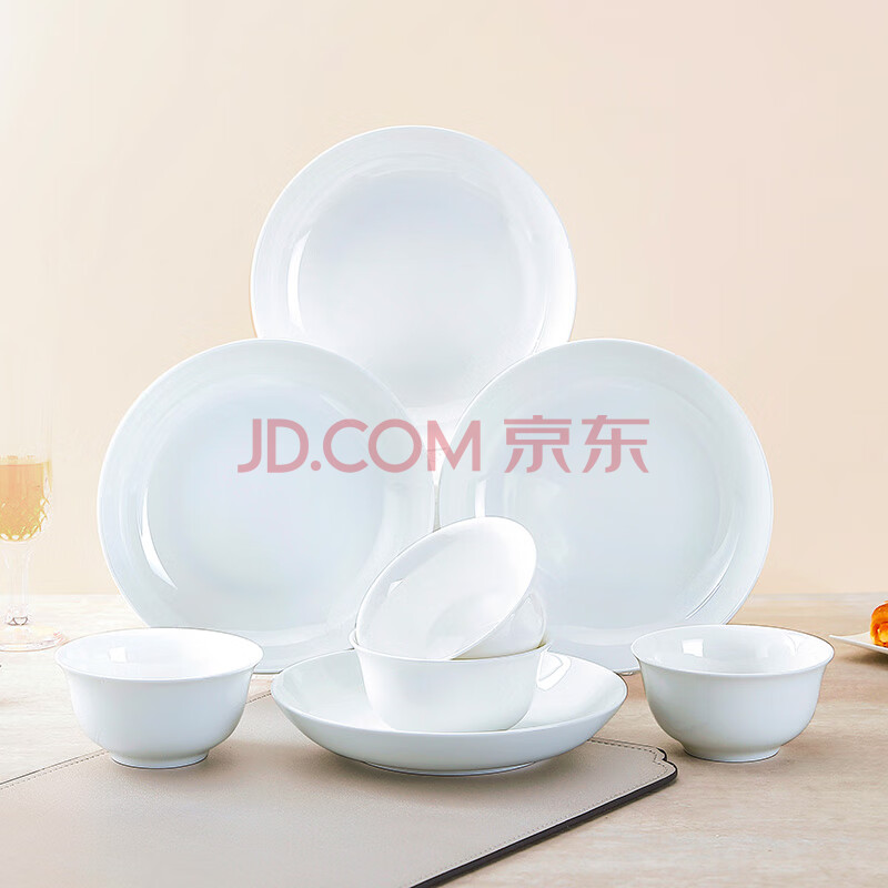 商品相册:斯凯绨(Sky Top)碗盘碟陶瓷骨瓷餐具套装家用乔迁饭碗盘子4人份纯白8头第