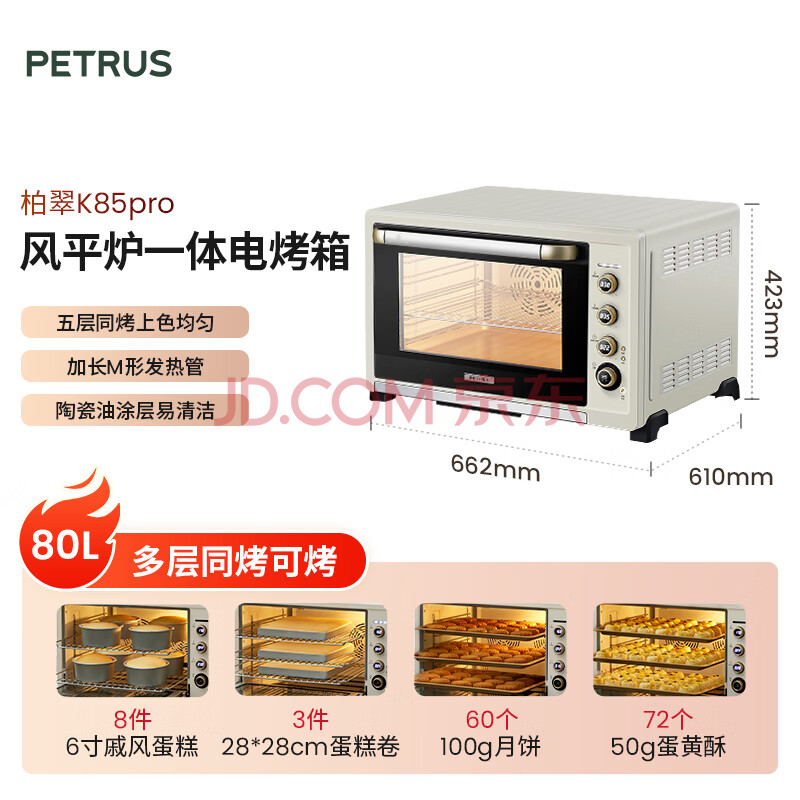 商品相册:柏翠(petrus) 电烤箱平炉风炉一体家用商用80L大容量K85pro第