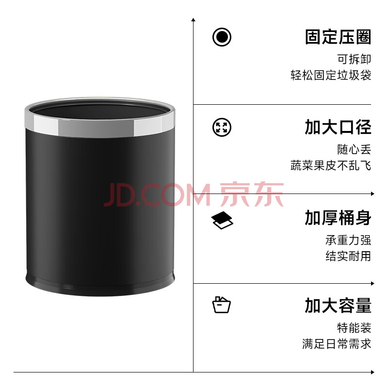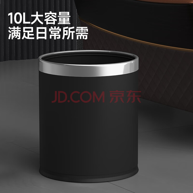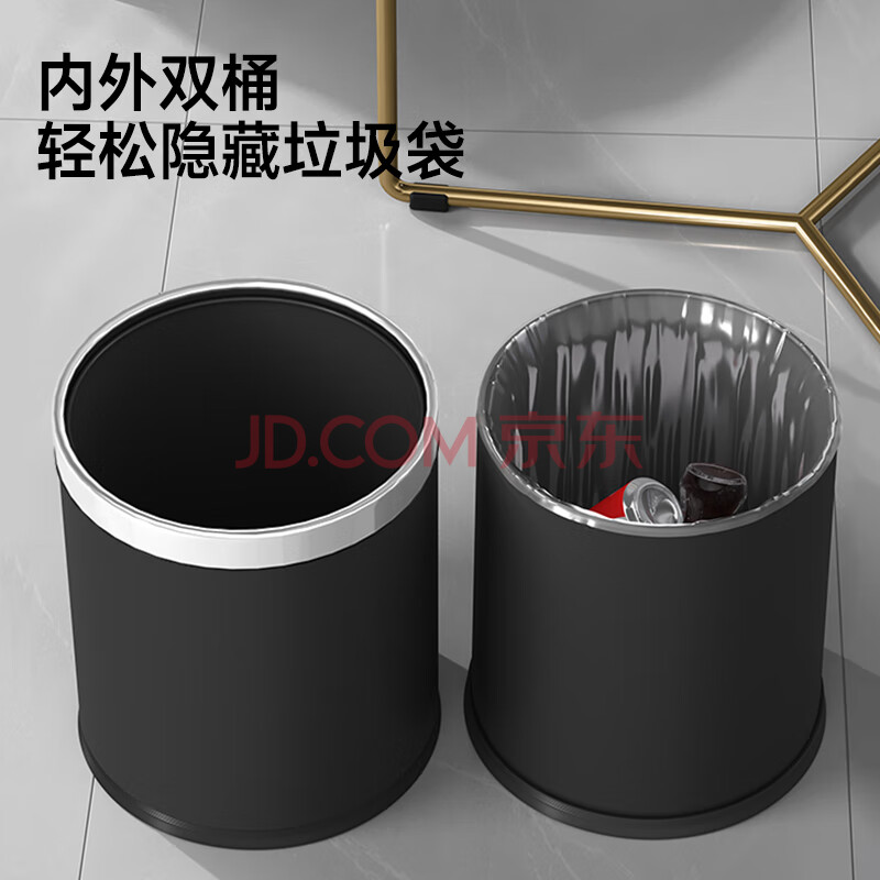 商品相册:五月花不锈钢垃圾桶直投10L大号双层金属酒店物业厨房卫生间卧室第1张/共9