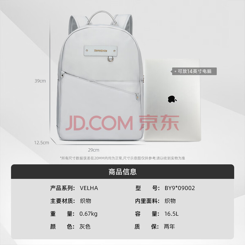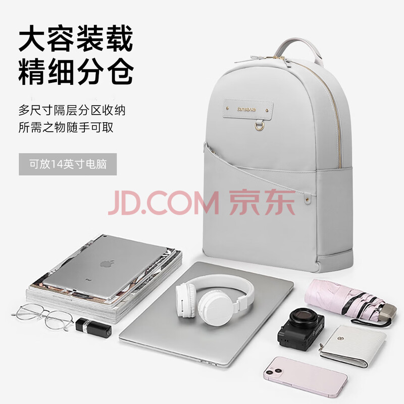 商品相册:新秀丽(Samsonite)双肩包女士电脑包14英寸苹果笔记本背包书包商务旅行包大容量学生第