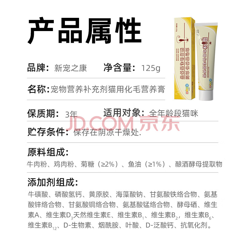 商品相册:新宠之康 猫咪化毛膏125g宠物幼成猫化毛球排毛吐毛调理肠胃营养补充第